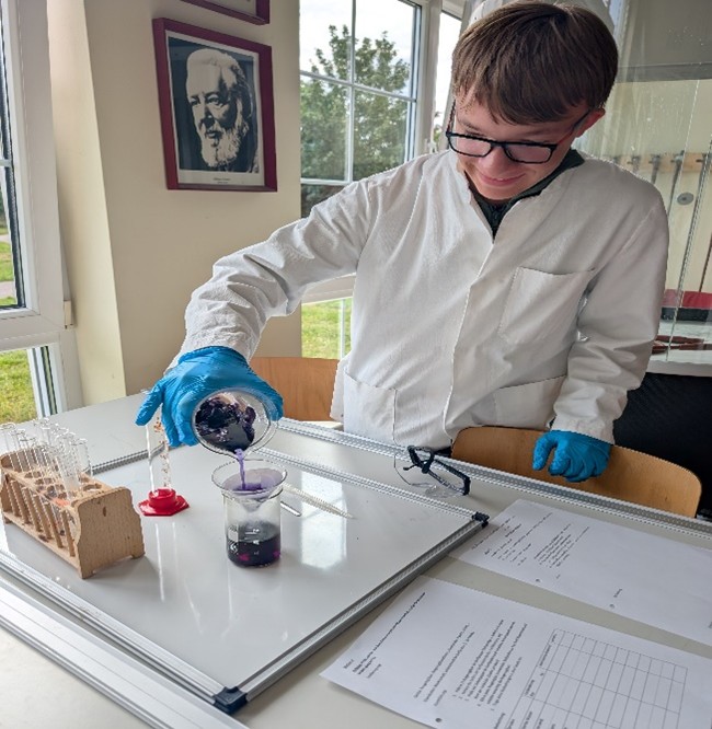 Oskar und Mario kamen sogar auf die Idee, dieses Experiment beim Tag der offenen Tür vorzuführen – ein schöner Beweis dafür, dass Chemie auch kreativ und öffentlichkeitswirksam sein kann.