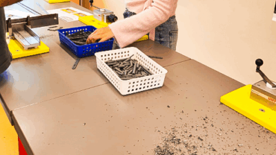 Danach begann das Kennenlernen verschiedener Werkzeuge und eine Einführung in die Bedienung der Maschinen. Erst jetzt konnten die einzelnen Schritte der Bauanleitung abgearbeitet werden. Dies erforderte von allen aufmerksames Lesen und Fingerfertigkeit.