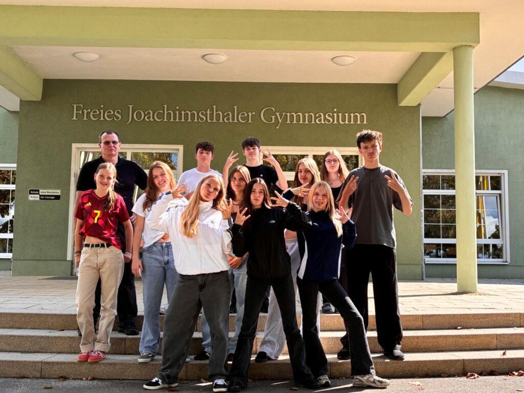 Und wir sind die Schüler:innen der Klasse 10, Lerngruppe 2 mit 11 Schüler:innen. Unser Klassenlehrer ist Herr Thiering. Unsere Klassensprecher:innen sind Linus, Emilia und Marlene.